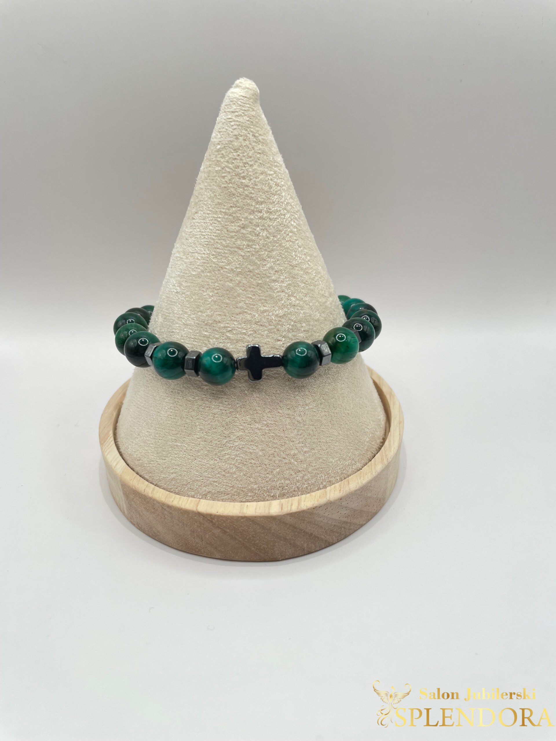 • Kamień: Zielone kocie oko (syntetyczne)