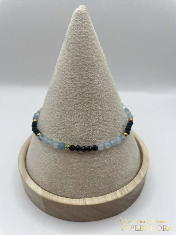 Odkryj piękno i moc naszej bransoletki wykonanej z turmalinu czarnego i akwamarynu. Każdy z kamieni o średnicy 4 mm został starannie fasetowany, co podkreśla ich naturalny blask i wyjątkowy charakter.