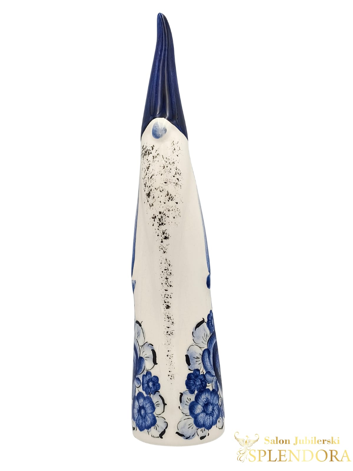 Ręcznie malowana figurka z fajansu przedstawiająca skrzata. Dzięki indywidualnemu malowaniu każdy egzemplarz może nieznacznie różnić się wzorem. Idealna jako dekoracja stołu, komody lub półki – szczególnie w okresie świątecznym.