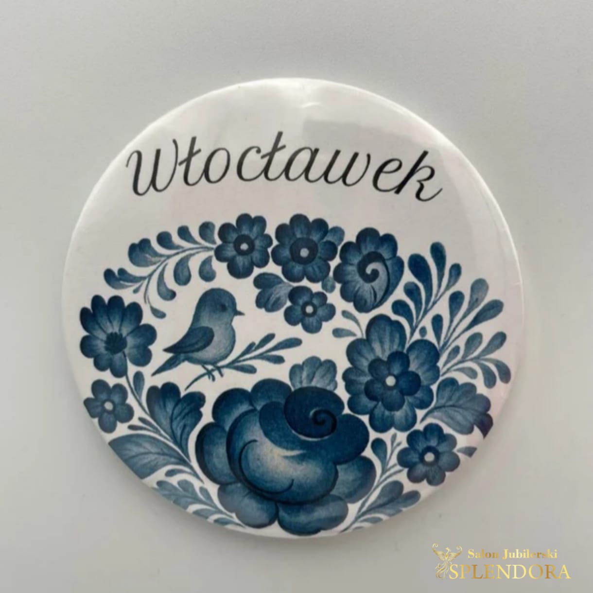 Okrągłe lusterko o średnicy 75 mm z motywem fajansu włocławskiego w dekoracji kobalt ptaszek to elegancki i praktyczny dodatek inspirowany tradycyjnym wzornictwem. Charakterystyczny kobaltowy motyw z ptaszkiem nadaje mu wyjątkowy, klasyczny wygląd, dzięki czemu świetnie sprawdza się jako drobny upominek, pamiątka regionalna lub element codziennego użytku.