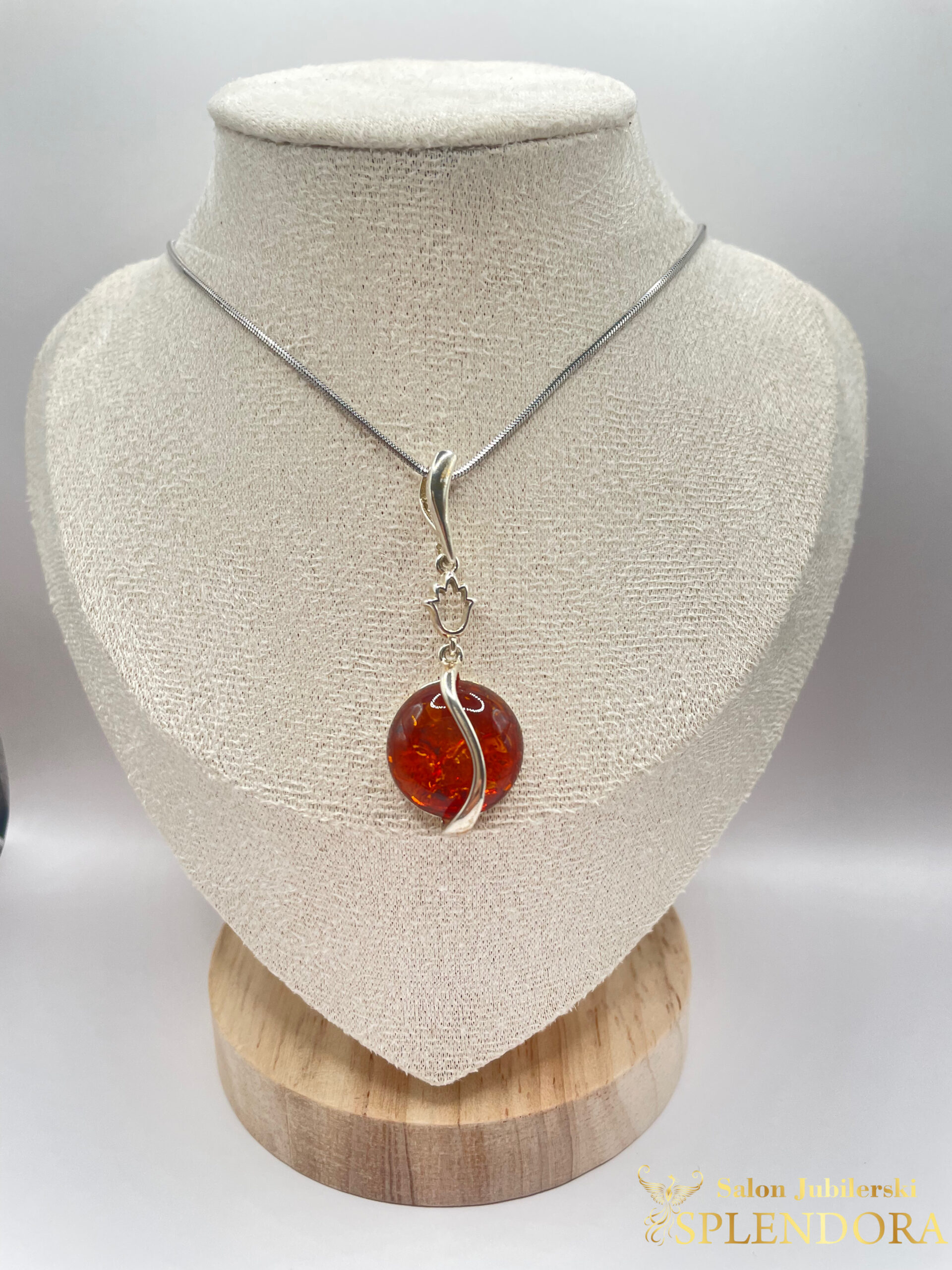 Elegancka zawieszka wykonana ze srebra próby 925 z naturalnym bursztynem bałtyckim – kamieniem cenionym za ciepłą barwę, ponadczasowe piękno i dobrą energię. Subtelny połysk srebra i głębia bursztynu tworzą efektowną, a zarazem klasyczną kompozycję, która pasuje do każdej okazji.