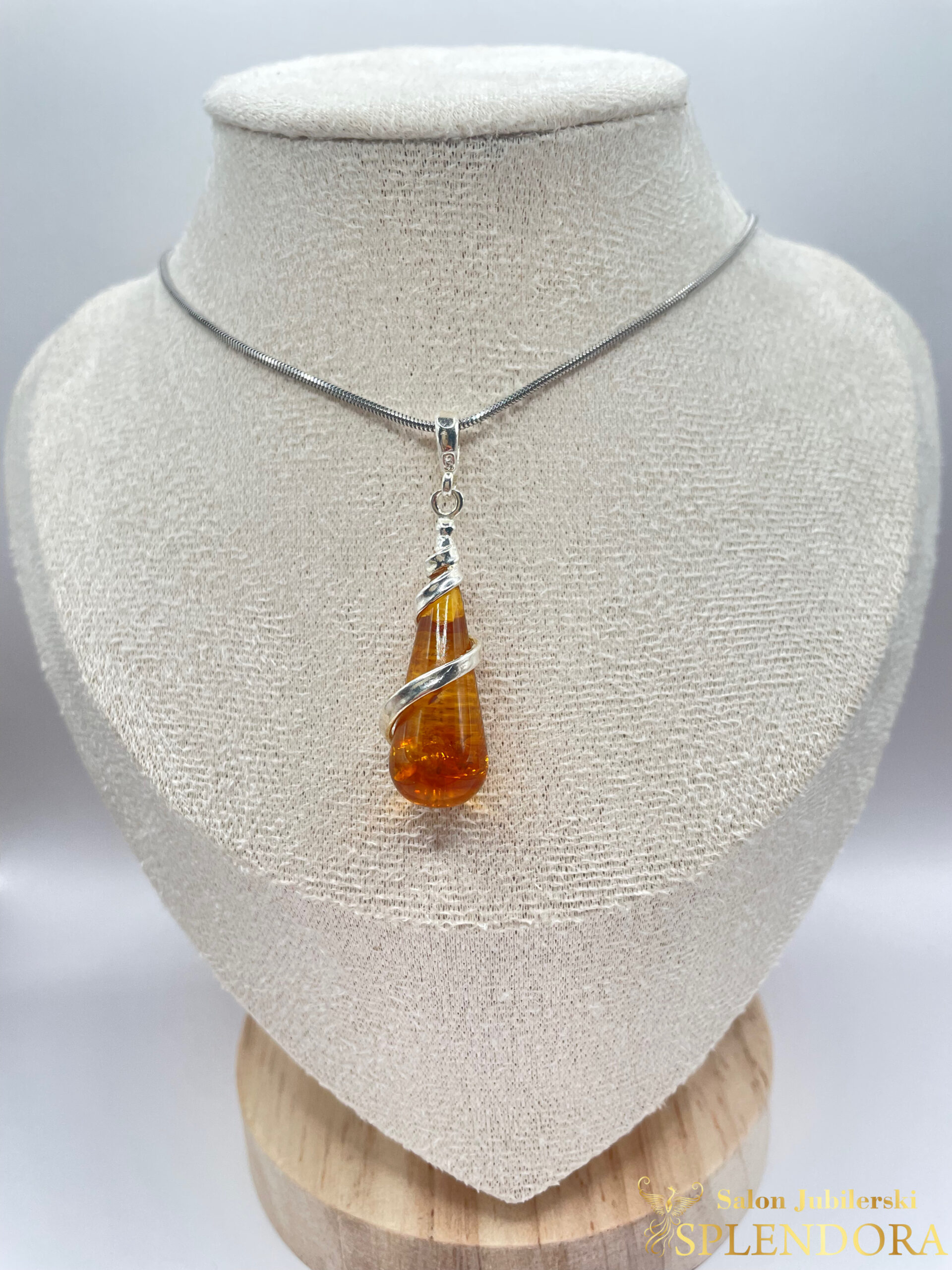Elegancka zawieszka wykonana ze srebra próby 925 z naturalnym bursztynem bałtyckim – kamieniem cenionym za ciepłą barwę, ponadczasowe piękno i dobrą energię. Subtelny połysk srebra i głębia bursztynu tworzą efektowną, a zarazem klasyczną kompozycję, która pasuje do każdej okazji.