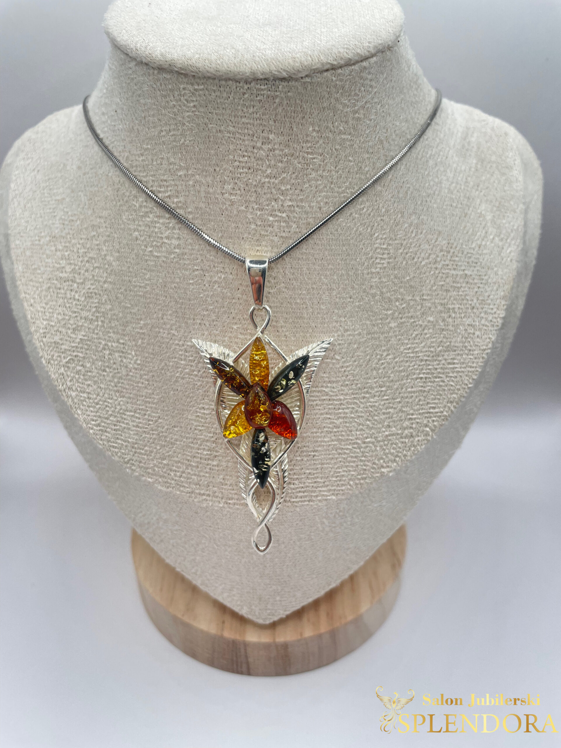 Elegancka zawieszka wykonana ze srebra próby 925 z naturalnym bursztynem bałtyckim – kamieniem cenionym za ciepłą barwę, ponadczasowe piękno i dobrą energię. Subtelny połysk srebra i głębia bursztynu tworzą efektowną, a zarazem klasyczną kompozycję, która pasuje do każdej okazji.