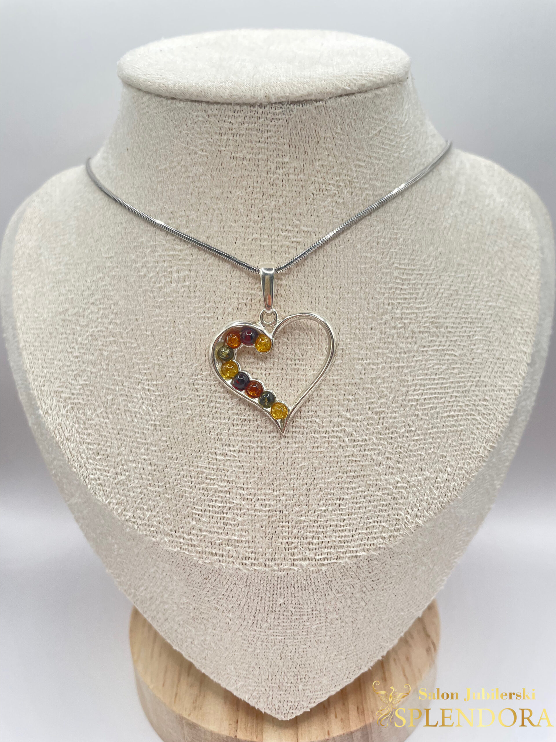 Zawieszka Serce z bursztynem